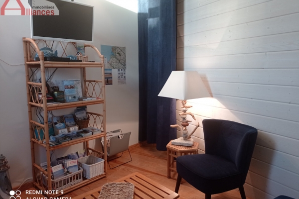 Rez de chaussée : entrée, séjour, cuisine aménagée équipée, salon (peut devenir une chambre), WC, cour close avec coin lingerie et salle de douche extérieure (idéal pour les retours de plage), local vélo fermé