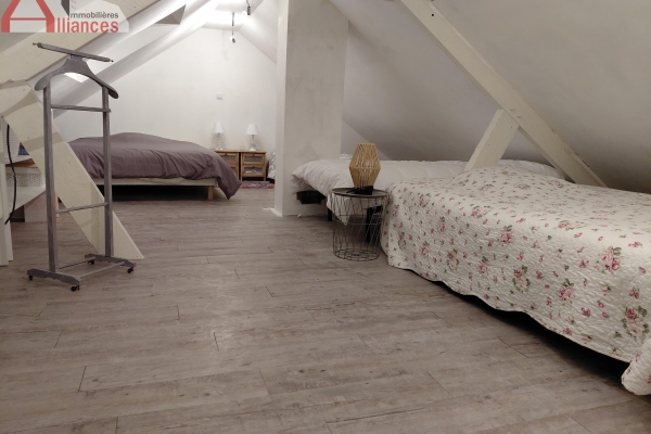 A l'étage une grande pièce de couchage de 35 m2 au sol environ.